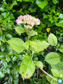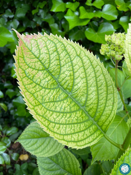 En effet, la terre de mon jardin a un pH basique et ce type d’hortensia se plait en sol acide. Dans mon jardin, ils assimilent donc mal le fer et font cette chlorose.